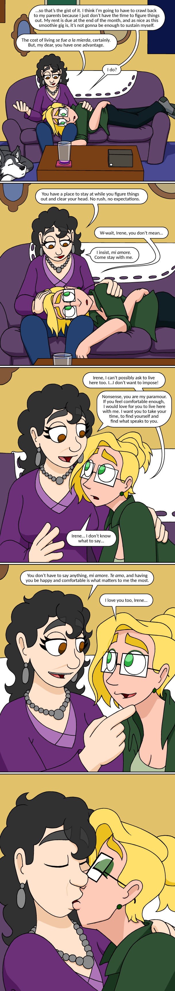 Does the kiss push up Angela's glasses just a bit? Very cute.