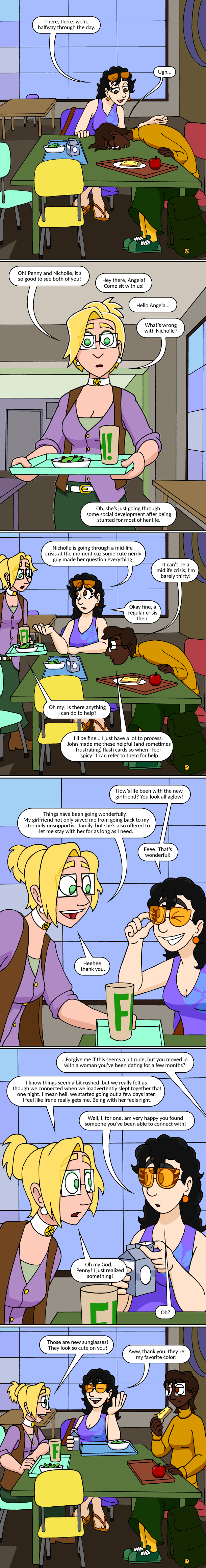 Oh look a wild Angela appeared! It looks like our favorite former masseuse! I thought this would have been a perfect opportunity to catch up with her and get a little bit of info about her and Irene's relationship. It turned out to be more than just a hook up you know! And come on now, I couldn't resist that gag at the end.